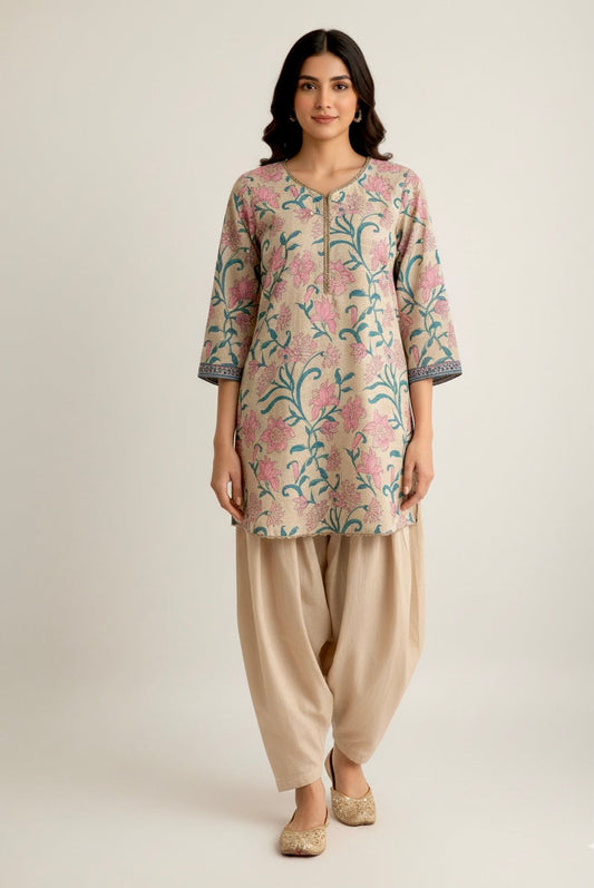 This 2-piece dress is made from khadar fabric. It includes a printed shirt and a...