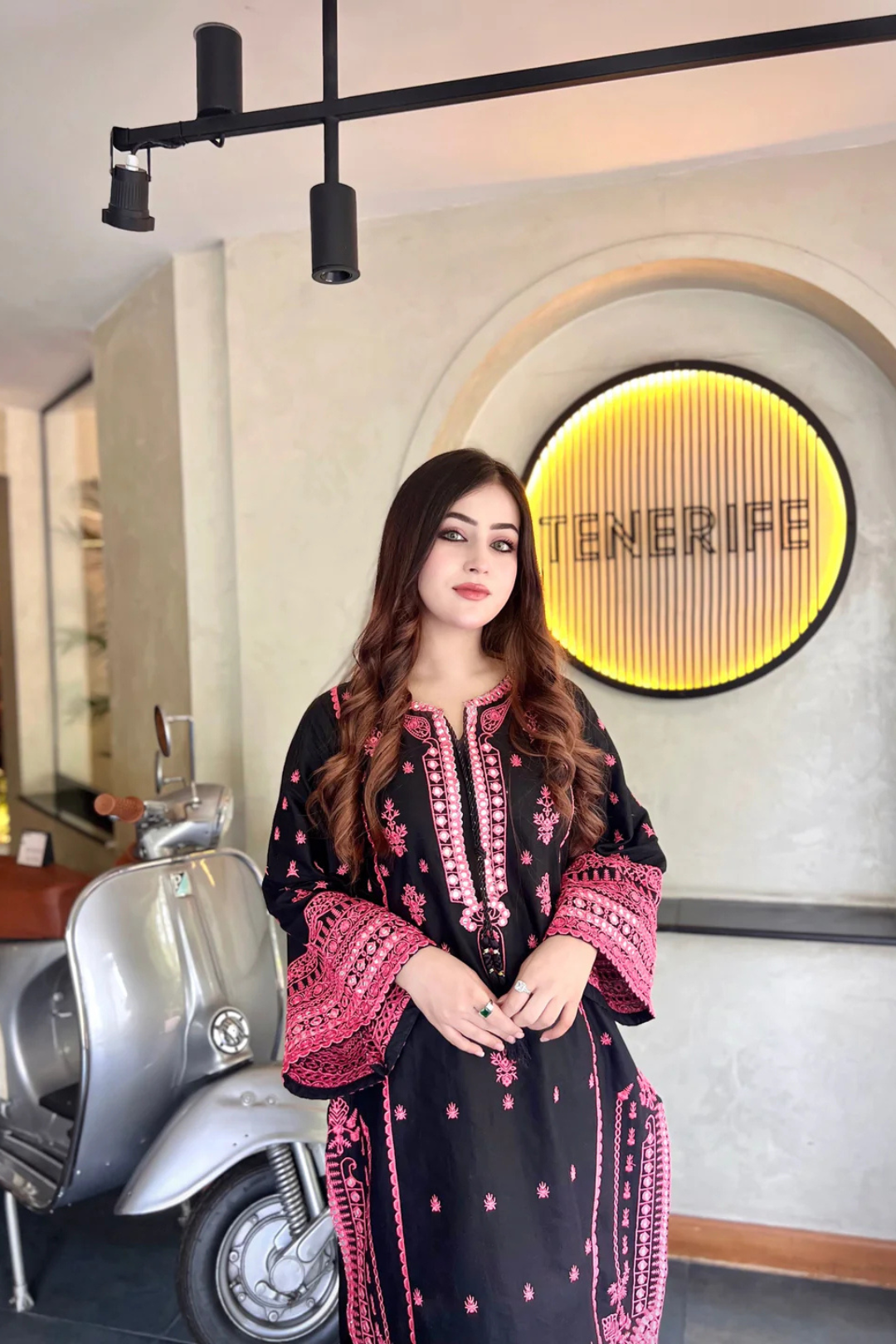 Slip into the enchanting Midnight Rose 2-piece cotton outfit and feel absolutely fabulous. This delightful set combines comfort with a touch of elegance, perfect for your next casual outing or a cozy evening at home. Crafted from soft, breathable cotton, it ensures you stay comfy all day long. Embrace the dark floral charm and twirl into your day with a smile!
