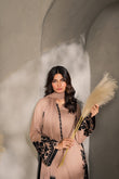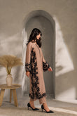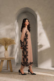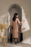 This cappuccino beige set brings a fancy touch to your autumn wardrobe with its intricate embroidery. The tropical Linen fabric feels like a warm hug while keeping your style game strictly on point. Whether it is a brunch date or an evening dawat, this clean silhouette ensures you are the star of the show. Grab the matching two-toned chiffon dupatta to add that extra bit of flowy flair to your look!